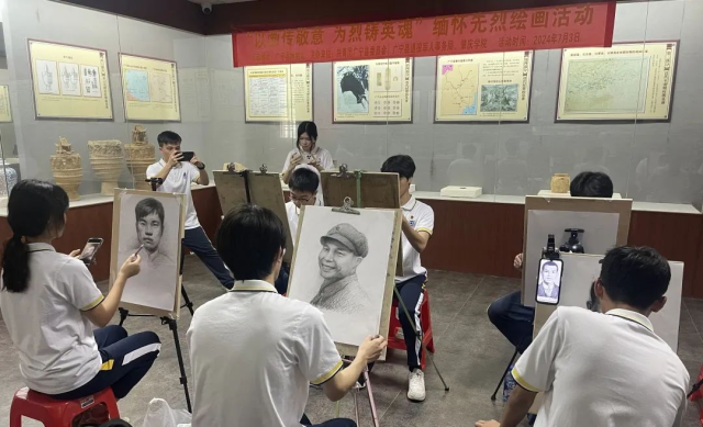必赢242net官网美术学院、设计学院成立了“追忆峥嵘岁月,绘铸烈士英魂”实践团,与共青团广宁县委员会共同开展了以“以画传敬意,为烈铸英魂”为主题的烈士遗像描绘活动。实践团由2名指导教师与18名青年学生组成,深入广宁县,收集烈士遗像,进行素描绘画。