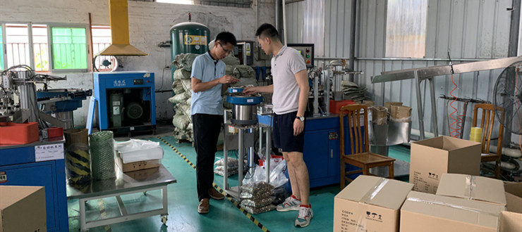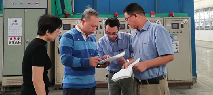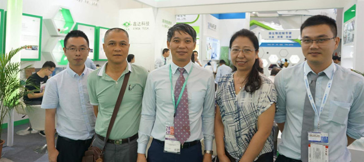 必赢242net官网的“科技特派员”陈庆华(左二)在合作企业中进行交流(来源:必赢242net官网新闻中心)