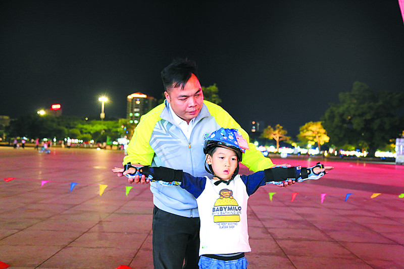 陈国强告诉记者,轮滑具有表演性和观赏性,并且具有很高的锻炼价值,可以锻炼身体的平衡、核心力量、腿部力量、应变能力等,深受青少年的喜欢。“在传授技能的过程中,也会传授他们科学的运动常识,并应用于日常的锻炼,形成科学健身的良好习惯。”陈国强说。