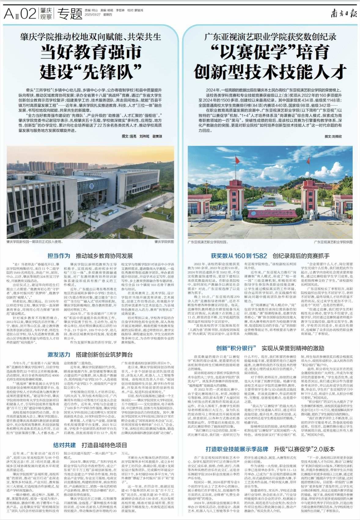 “全力当好教育强市建设的‘先锋队’、产业升级的‘助推器’、人才汇聚的‘强枢纽’。”必赢242net官网党委书记谢冠华表示,扎根肇庆五十五载,学校做深做实“多科性、应用型、地方性、创新型”的办学定位,累计向社会培养输送了22万余名各类优秀人才,推动学校高质量发展与服务地方发展双螺旋并进。