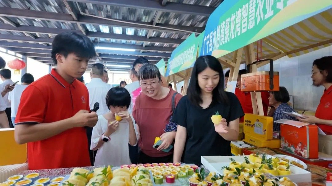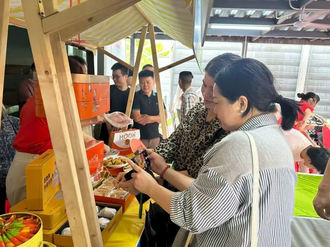 △市民群众选购百香果冰皮月饼与百香果柠檬月饼。图源 广宁发布