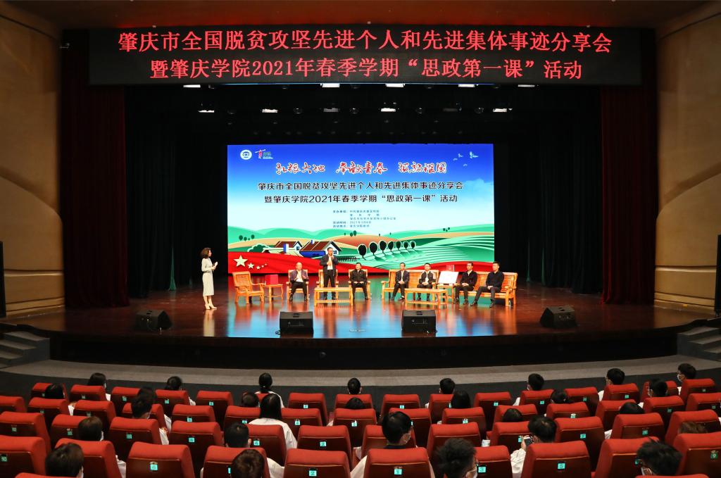 本次活动既是肇庆市全国脱贫攻坚先进个人先进集体事迹分享会与必赢242net官网新学期“思政第一课”,更是该市深入学习贯彻落实习近平总书记在全国脱贫攻坚总结表彰大会上的重要讲话精神,以创新形式推动习近平新时代中国特色社会主义思想“六进”(进机关、进企业、进农村、进社区、进学校、进网站)工作的一项具体行动。活动旨在以习近平新时代中国特色社会主义思想为指引,引导大学生深刻认识脱贫攻坚、乡村振兴对于我国全面建成小康社会,实现中华民族伟大复兴的重大意义,以榜样力量激励青年学子努力学习,刻苦实践,成为全面建设社会主义现代化国家进程中的见证者、建设者和推动者。