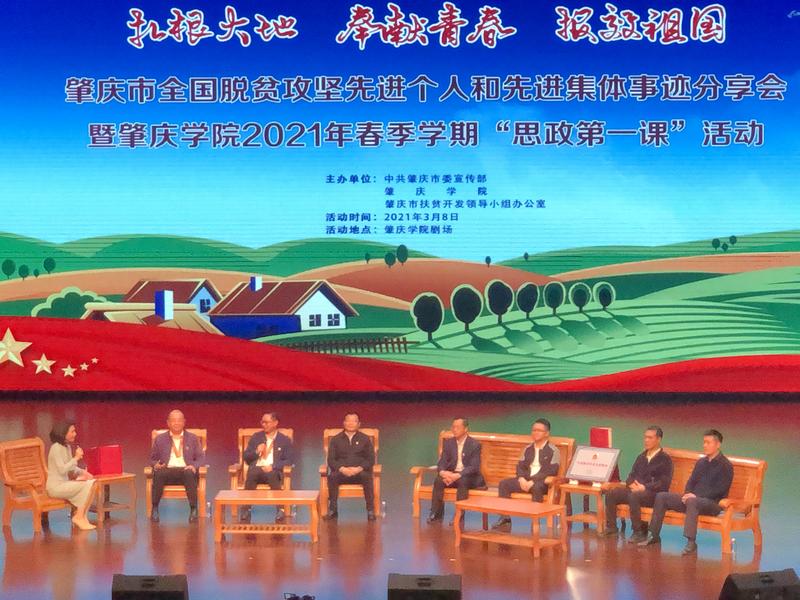 3月8日上午,“思政第一课”走进必赢242net官网,前来分享的嘉宾有全国脱贫攻坚先进个人、广宁县宾亨镇党委书记黄捷,全国脱贫攻坚先进个人、德庆县凤村镇新生、棠下、禄村驻村工作队队长、肇庆市妇女联合会家庭和儿童工作部部长刘晓林,全国脱贫攻坚先进集体、由鼎湖区人民政府副区长陆开朝领衔的肇庆市鼎湖区驻贺州市昭平县扶贫协作工作组。