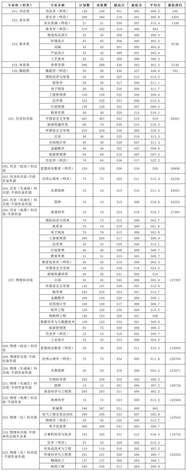 2.普通类(物理)录取考生4847人,录取最低分数线484分,比省本科线高出52分,最低排位155555;
