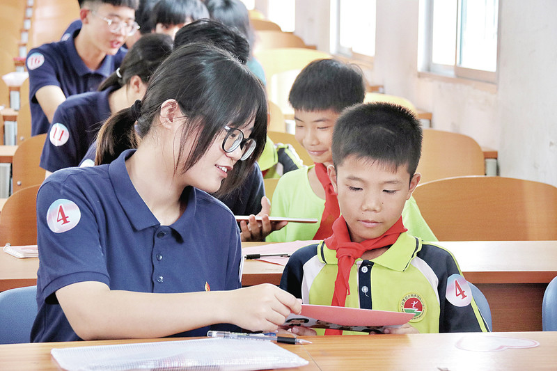 志愿者冯雅诗和同学在入户辅导的过程中遇到了困难。她们负责结对帮扶的初中女生小昕是一名留守儿童,由于常年缺乏父母陪伴,女孩性格内向,学习热情不高,甚至向她们表达了高中毕业后便去务工的想法。冯雅诗心里焦急一时又无计可施,只能一边对她进行针对性地辅导,一边跟她分享学习上的感悟和体会,希望重新激发她对学习的热情。