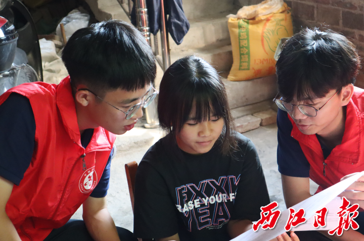 志愿者冯雅诗和同学在入户辅导的过程中遇到了困难。她们负责结对帮扶的初中女生小昕是一名留守儿童,由于常年缺乏父母陪伴,女孩性格内向,学习热情不高,甚至向她们表达了高中毕业后便去务工的想法。冯雅诗心里焦急一时又无计可施,只能一边对她进行针对性地辅导,一边跟她分享学习上的感悟和体会,希望重新激发她对学习的热情。