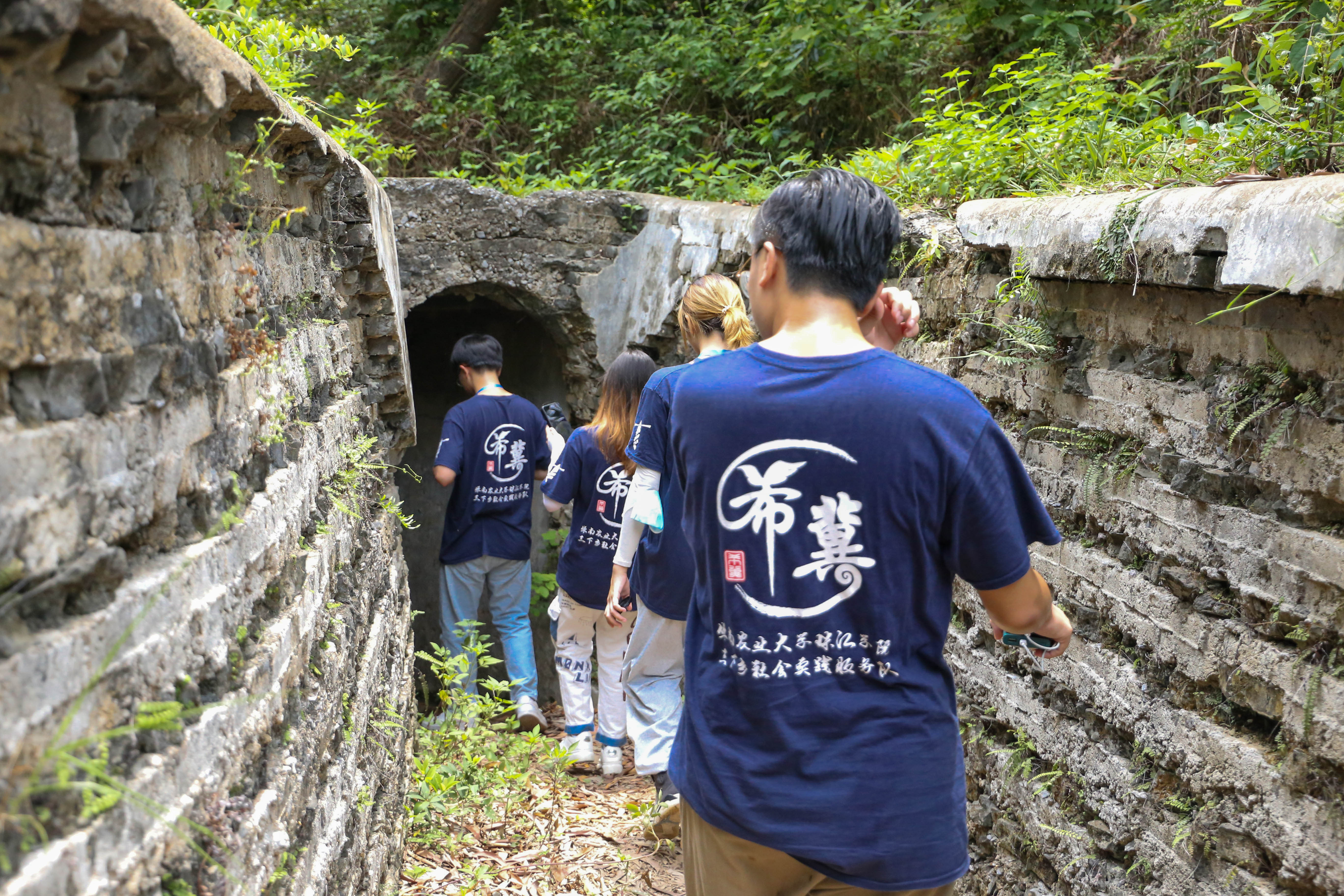 图为队员实地考察炮台。中国青年网通讯员 苑梦摄