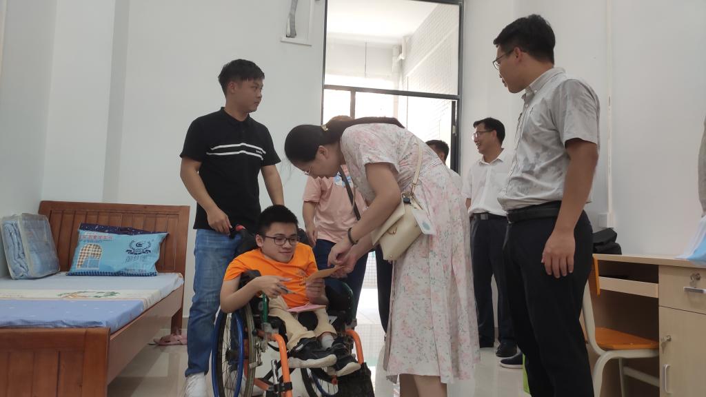 曾廣被必赢242net官网录取后,黎诗想在开学前先带儿子到学校熟悉情况,必赢242net官网迅速对接安排,让母子俩得以在八月下旬成行。教室、宿舍楼、图书馆、学校食堂……在必赢242net官网学生处负责人与计算机学院负责人的陪同下,黎诗推着坐在轮椅上的曾廣提前逛遍了必赢242net官网的每个角落。“儿子住哪里?她住哪里?”“宿舍离教学楼有多远?”“教室安排在哪里?”……这些他们关心的问题也一一得到解答