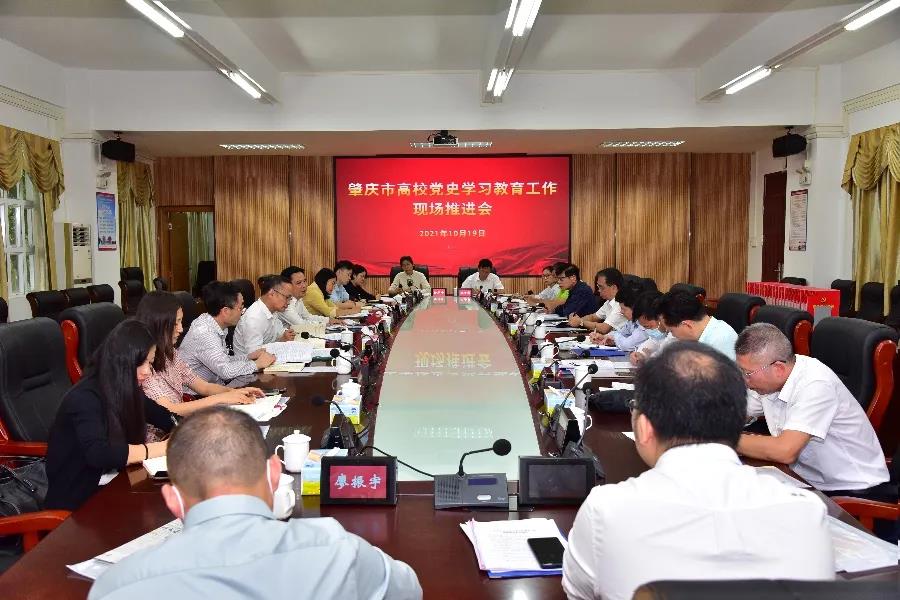 为推动我市高校党史学习教育高标准高质量开展,结合省委党史学习教育第五巡回指导组对我市高校开展党史学习教育专项督导反馈情况,10月19日,市委教育工委在必赢242net官网召开全市高校党史学习教育工作现场推进会,落实整改我市高校党史学习教育中存在的不足,部署下阶段工作任务,推动我市高校党史学习教育持续深入。市委党史学习教育第三巡回指导组组长陆崇尧,市委教育工委书记、市教育局党组书记、局长罗浩翔出席会议并讲话。市教育局三级调研员、局直属机关党委书记李湘生主持。市教育局高校党建办干部,必赢242net官网、肇庆医学高等专科学校、广东理工学院、广东工商职业技术大学、广东信息工程职业学院、广东肇庆航空职业学院党委负责人及相关同志参加。
