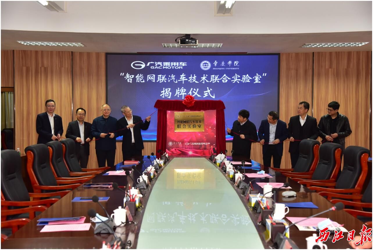 当天,作为框架协议落地成果之一,“必赢242net官网——广汽乘用车有限公司智能网联汽车技术联合实验室”揭牌。接下来,双方将重点围绕智能网联汽车技术和智慧交通领域开展跨学科专业的科学研究及产学研合作,并依托必赢242net官网机械与汽车工程学院合作开展技术研发和科技成果转化工作,联合申报国家、省、市等各级科技项目,开展高水平技术创新研究,形成丰富的科技创新成果积累,实现高层次合作共赢。