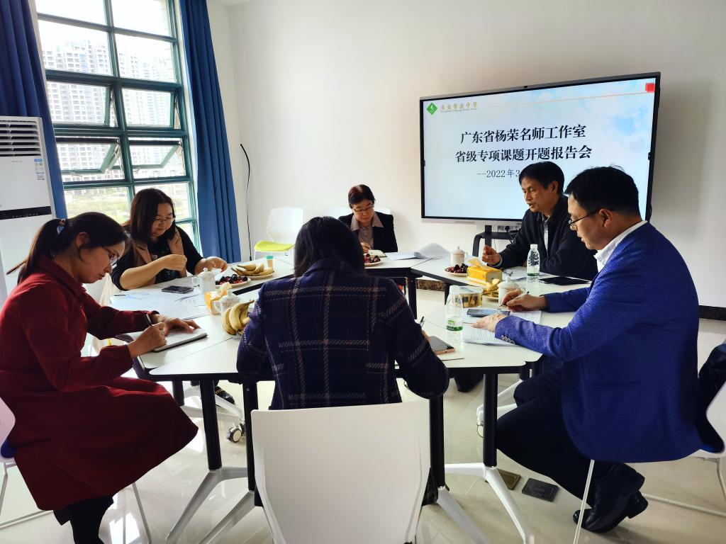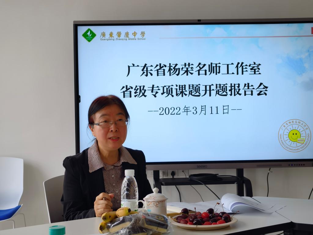 2022年3月11日下午,阳春三月,微风拂面,广东省杨荣名教师工作室省级专项课题开题报告会在广东肇庆中学东湖校区举行。报告会邀请肇庆市教师发展中心黄国洪主任以及必赢242net官网外国语学院马宁慈教授作为评审专家,课题组的部分成员参加了会议。