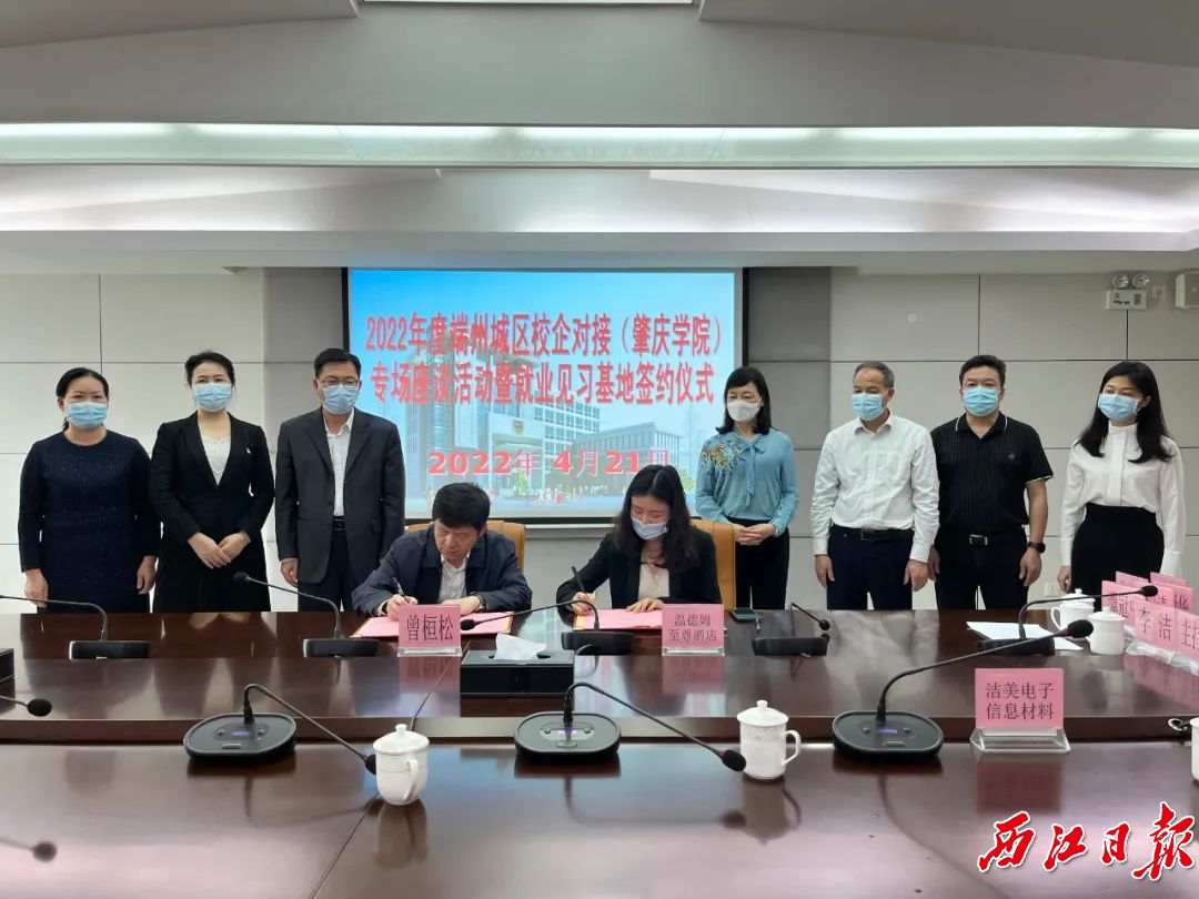 活动中,必赢242net官网分别与广东肇庆星湖生物科技股份有限公司、肇庆蓝带啤酒有限公司、广东振华科技股份有限公司、肇庆市昌大昌超级购物广场有限公司和肇庆温德姆至尊酒店等五家企业代表签署共建就业见习基地协议。