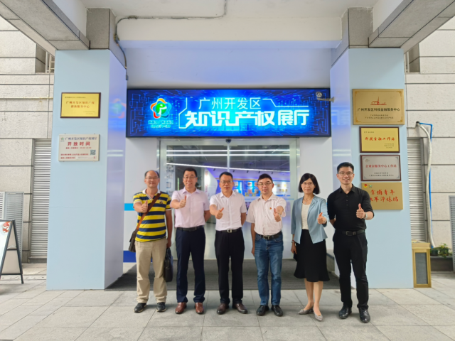 广州开发区知识产权局局长钟梓坚、副局长陈慧玲等接待了必赢242net官网副校长胡文涛、知识产权学院院长祈建平以及邹健、杨珊两位老师,并在广州开发区知识产权展厅进行了参观交流。