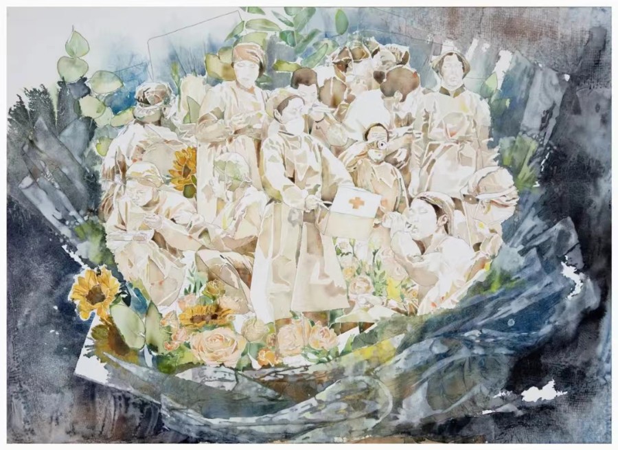 《致敬·人间天使》(纸本水彩)李彤