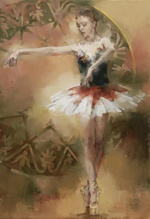 《玉立》(布面油画)崔弥莱