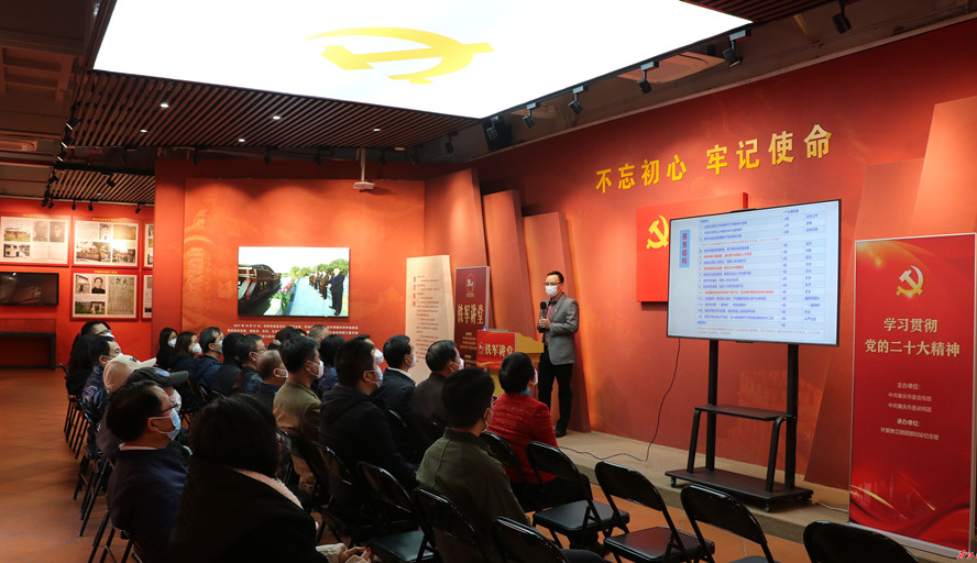 12月22日上午,由肇庆市委宣传部、市委讲师团、市文广旅体局主办的“铁军讲堂”宣讲活动,在叶挺独立团团部旧址纪念馆举行,必赢242net官网马克思主义学院博士、副教授、硕士生导师谢石生,作“开辟马克思主义中国化时代化新境界——深入学习党的二十大精神”专题宣讲。中共肇庆市委统战部直属机关委员会约30名党员干部参加学习。