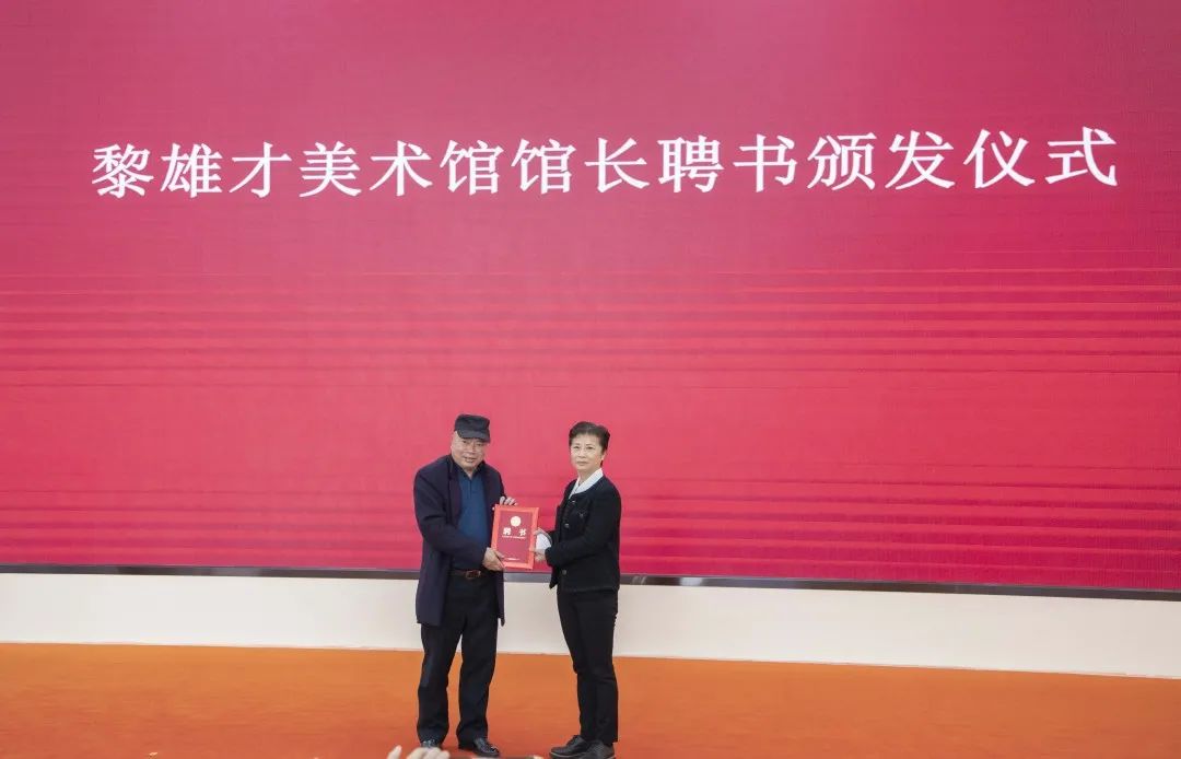 △活动现场为黎雄才美术馆馆长颁发聘任证书。杨乐祺 摄