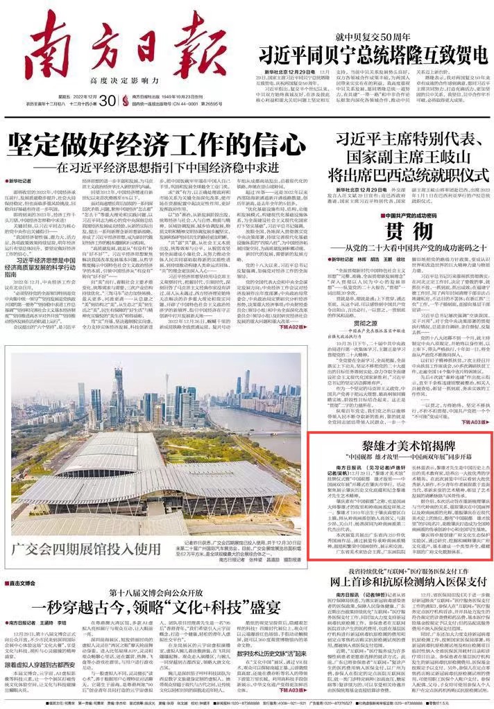 南方日报讯 (见习记者/卢逸轩 记者/吴帆)12月29日,“黎雄才美术馆”挂牌仪式暨“中国砚都 雄才故里——中国画双年展”开幕式在肇庆市举行。活动聚焦展示肇庆历史文化底蕴和纪念黎雄才先生艺术精神。