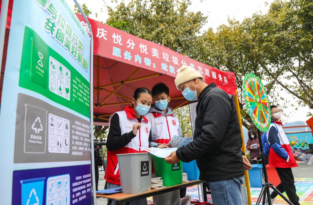 志愿者现场为群众讲解垃圾分类常识。西江日报记者 梁小明 摄