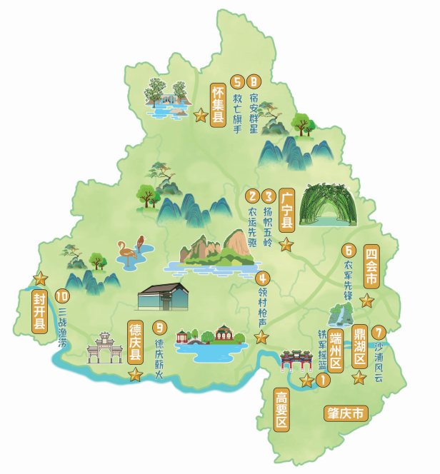 完成“红十景”“绿十景”“现十景”“农十景”“古十景”等“肇庆五十景”评选,特别是成功打响肇庆“红十景”品牌,推出红十景研学游,将单一景区景点串珠成链,策划精品旅游线路,推动旅游业“二次革命”,不断提升肇庆旅游品牌的影响力和知名度。