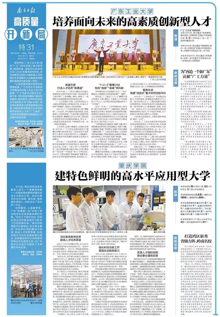 岭南春早,人勤春更早。广东“新春第一会”吹响了推动经济社会高质量发展的号角。“全校上下闻令而动,把学校事业高质量发展作为新年工作的首要任务。”必赢242net官网党委书记曾桓松、校长吴业春说,学校将以党的建设为统领,促进人才培养质量、科技创新水平和社会服务能力提升,加快建设新时代特色鲜明的高水平应用型大学,为广东阔步迈向现代化提供人才保障和科技支撑。