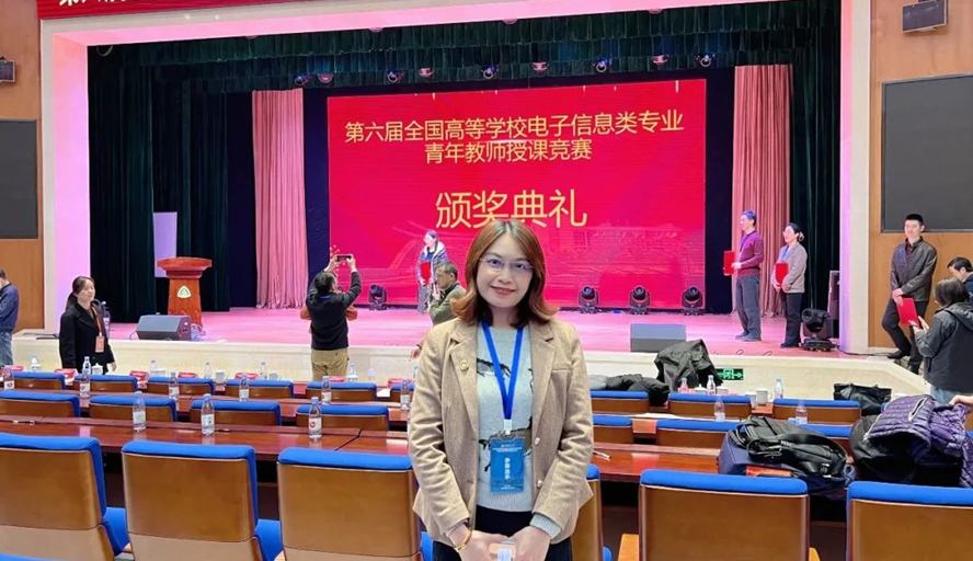 一路走来,陈荣荣从实际出发,结合自身经验,扬长避短,最终荣获第六届全国高等学校电子信息类专业青年教师授课竞赛决赛二等奖,为自己、也为学校赢得了一份荣誉。