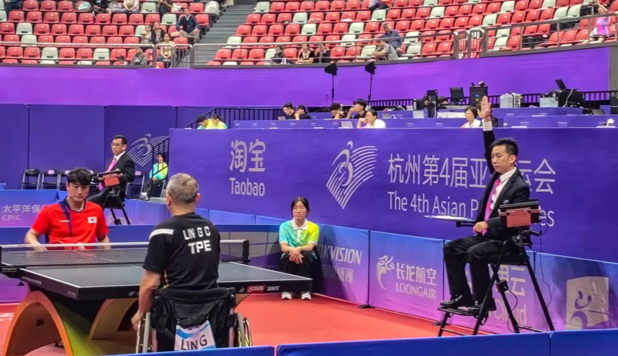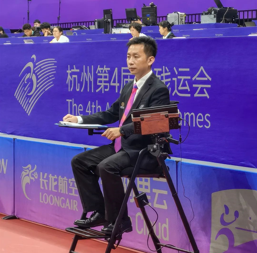 2023年5月,一条“意外”短信让杨博老师瞬间感到惊喜。“受2022年第19届亚运会拱墅运河体育公园体育运行团队邀请,中国残联委派担任第4届亚残会乒乓球项目国内技术官员”,短信内容简短,信息量却十分庞大。杨博看着短信有些许的错愕,待到缓过神已被“去亚残运会当技术官员”的兴奋与喜悦包围。