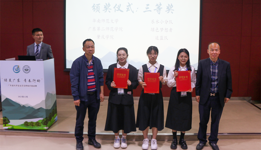 本网讯 12月2日,由广东省环境科学学会和广东省本科高校环境科学与工程类专业教学指导委员会主办的首届广东省大学生生态文明知识挑战赛决赛在广州举行,我校代表队斩获二等奖1项、三等奖1项,成绩仅次于东道主中山大学。