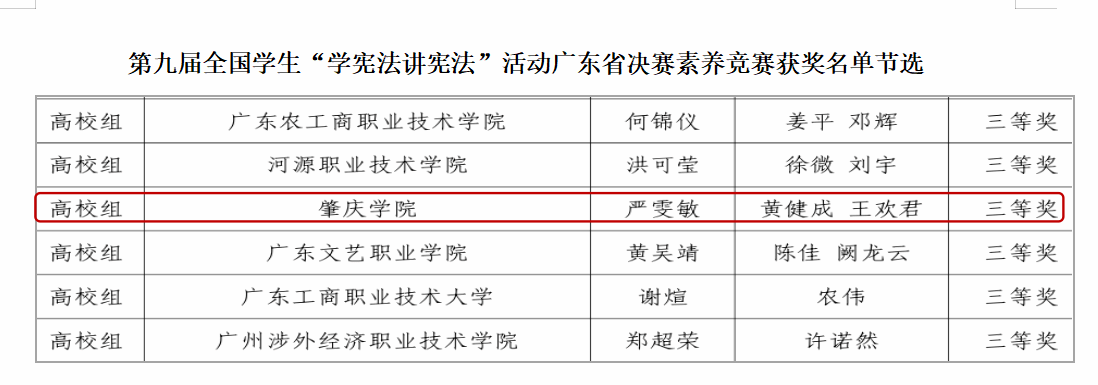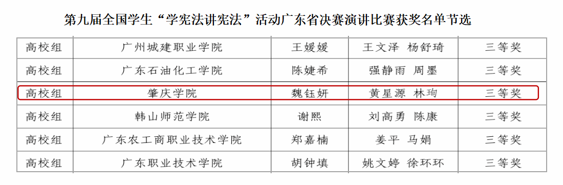 本网讯 为全面学习贯彻党的二十大精神,深入学习贯彻习近平法治思想,推动青少年宪法宣传教育常态化长效化,在省教育厅举办的第九届全省学生“学宪法 讲宪法”活动中,政法学院魏钰妍同学获得演讲比赛高校组三等奖,严雯敏同学获得素养竞赛高校组三等奖。