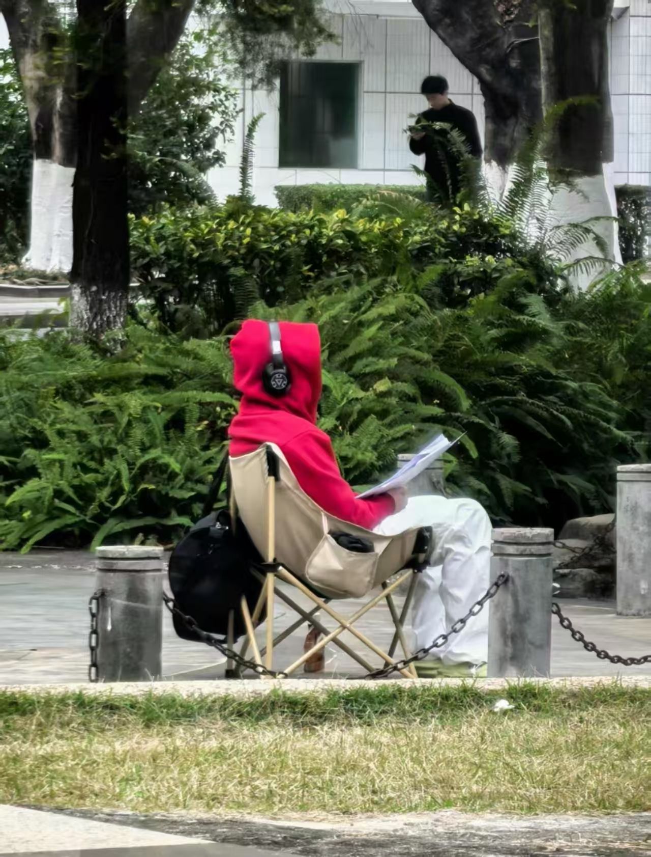 转换赛道后的日子和之前并没有什么不同。从2024年3月开始,陈胜涌每天下了课就往图书馆跑,全身心泡在知识的海洋里,学到图书馆闭馆才回宿舍。暑假他也坚持留校复习,到往届校友在学校附近开的自习室租了一个位置,也结识了一位“考研搭子”,彼此在备考的日子里,携手并肩往各自的目标走去。