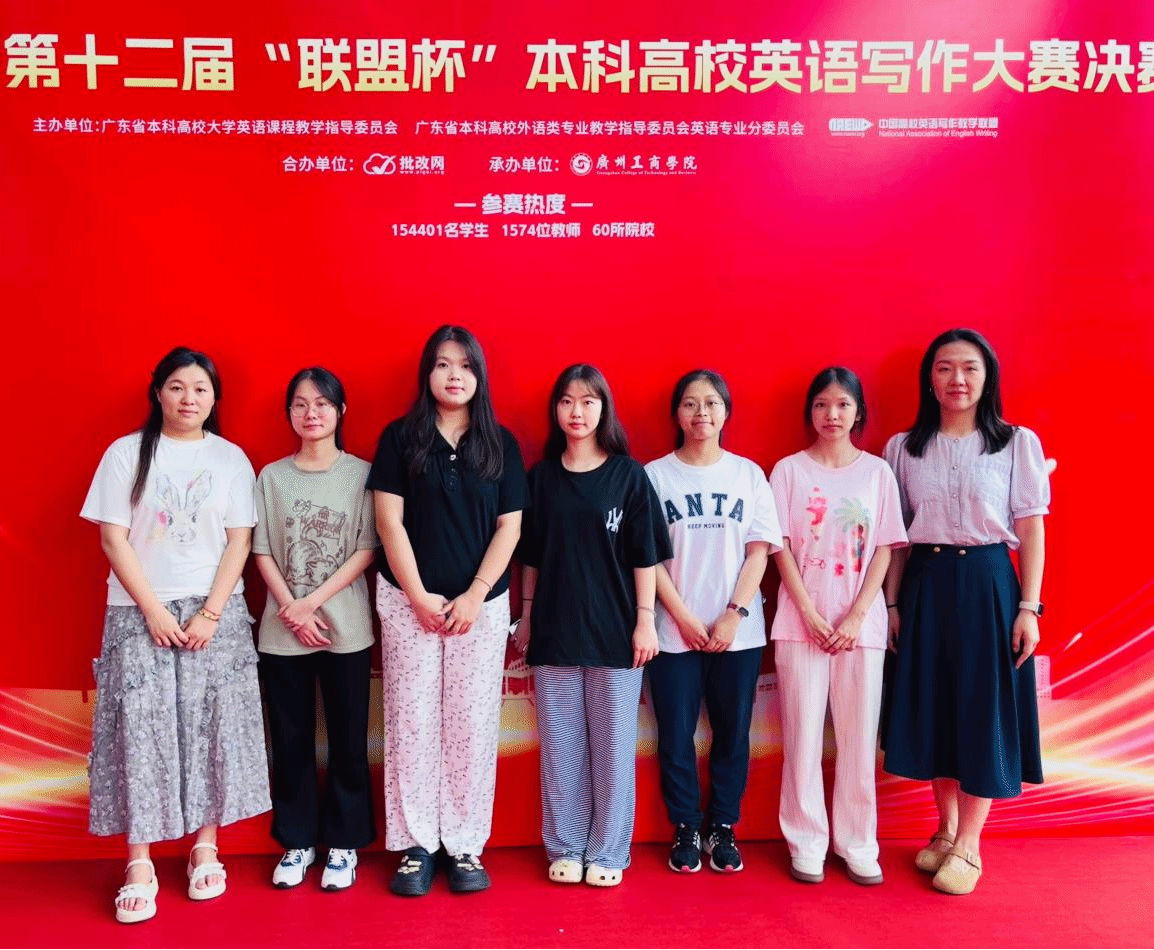 本网讯 5月24日,广东省第十二届“联盟杯”本科高校英语写作大赛决赛在广州工商学院成功举行。本次大赛由广东省本科高校大学英语课程教学指导委员会、广东省本科高校外语类专业教学指导委员会英语专业分委员会、中国高校英语写作教学联盟联合主办。我校在吴永练、刘雨薇2位老师的组织下,大学英语组和英语专业组共3000多人参加,经过初赛、复赛的层层选拔,最终有5名同学在广东省决赛中取得优异成绩,其中大学英语组获得2个一等奖,1个二等奖、1个三等奖,英语专业组获得1个三等奖。