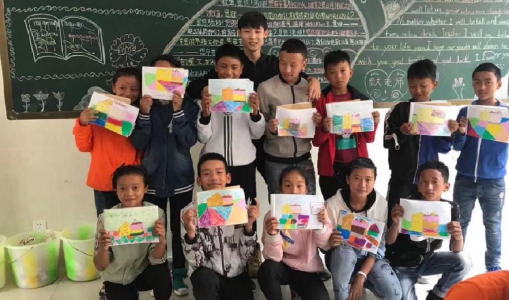 在林芝,有一些孩子只有寒暑假才能回家,他们的周末都是在学校度过的,陪伴和照顾他们的只有班主任和生活老师。我经常会看见那些孩子孤独地坐在阳光下,手里捧着书安静地阅读,他们乖巧又懂事的模样让我很心疼,所以我在墨脱县中学创立了美术社团,每个周末下午都会在学校里教孩子们画画,用自己独特的方式去陪伴、帮助那些孤独的孩子,希望能够带给他们温暖。孩子们像阳光一样照亮了我的支教生活,看到他们的笑颜,我就觉得自己所做的一切都是有意义的。