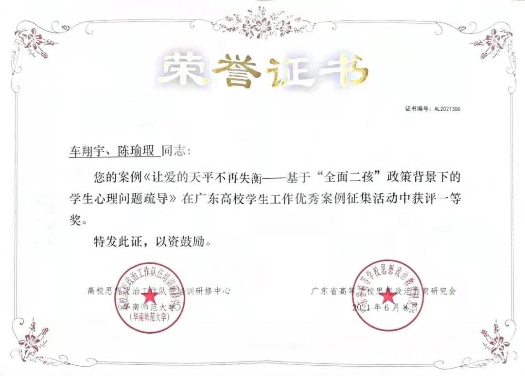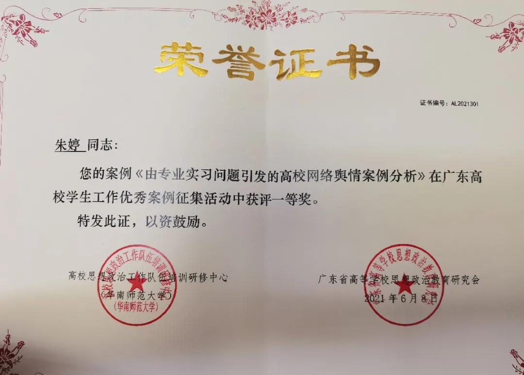广东高校学生工作优秀案例征集活动一等奖