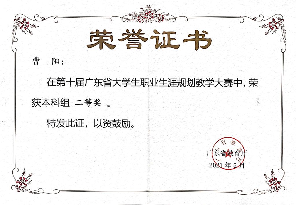 第十届广东省大学生职业生涯规划教学大赛本科组二等奖