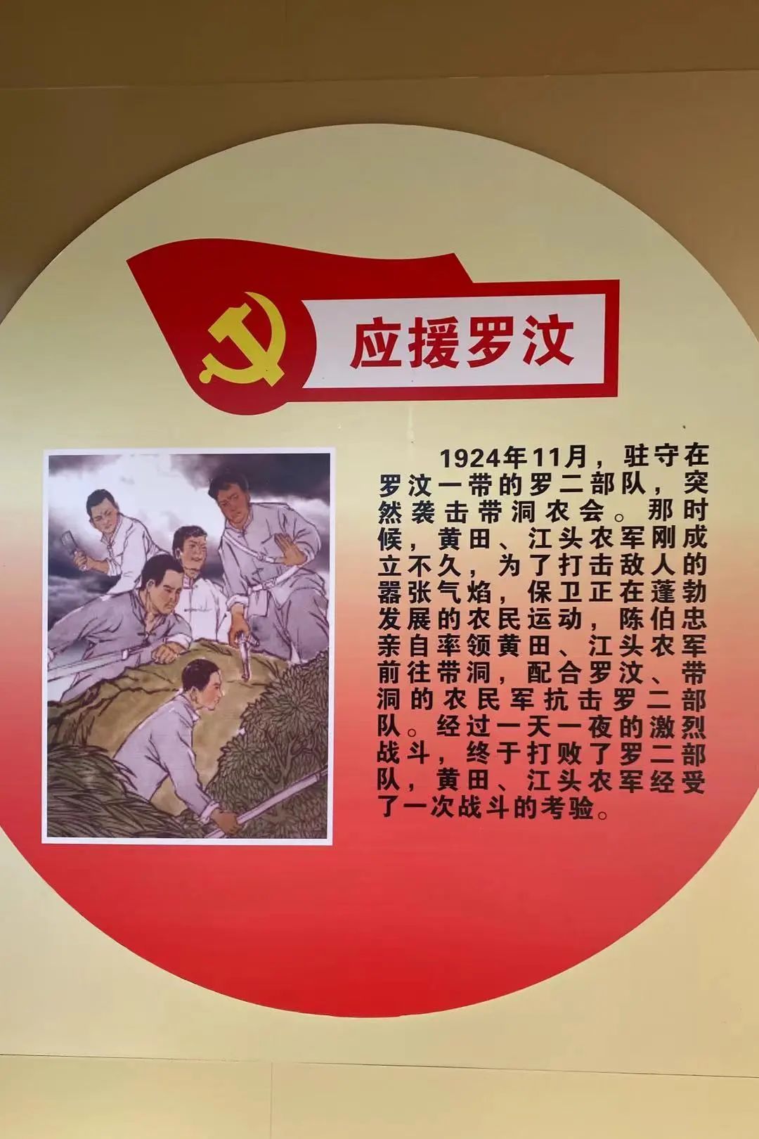 1924年9月12日,在陈伯忠的领导下,江头乡农会在朝谷陈公祠成立。农民们积极参与农民运动,在应援罗汶、激战潭布等战役中接连取得胜利,打击了反动派的嚣张气焰。