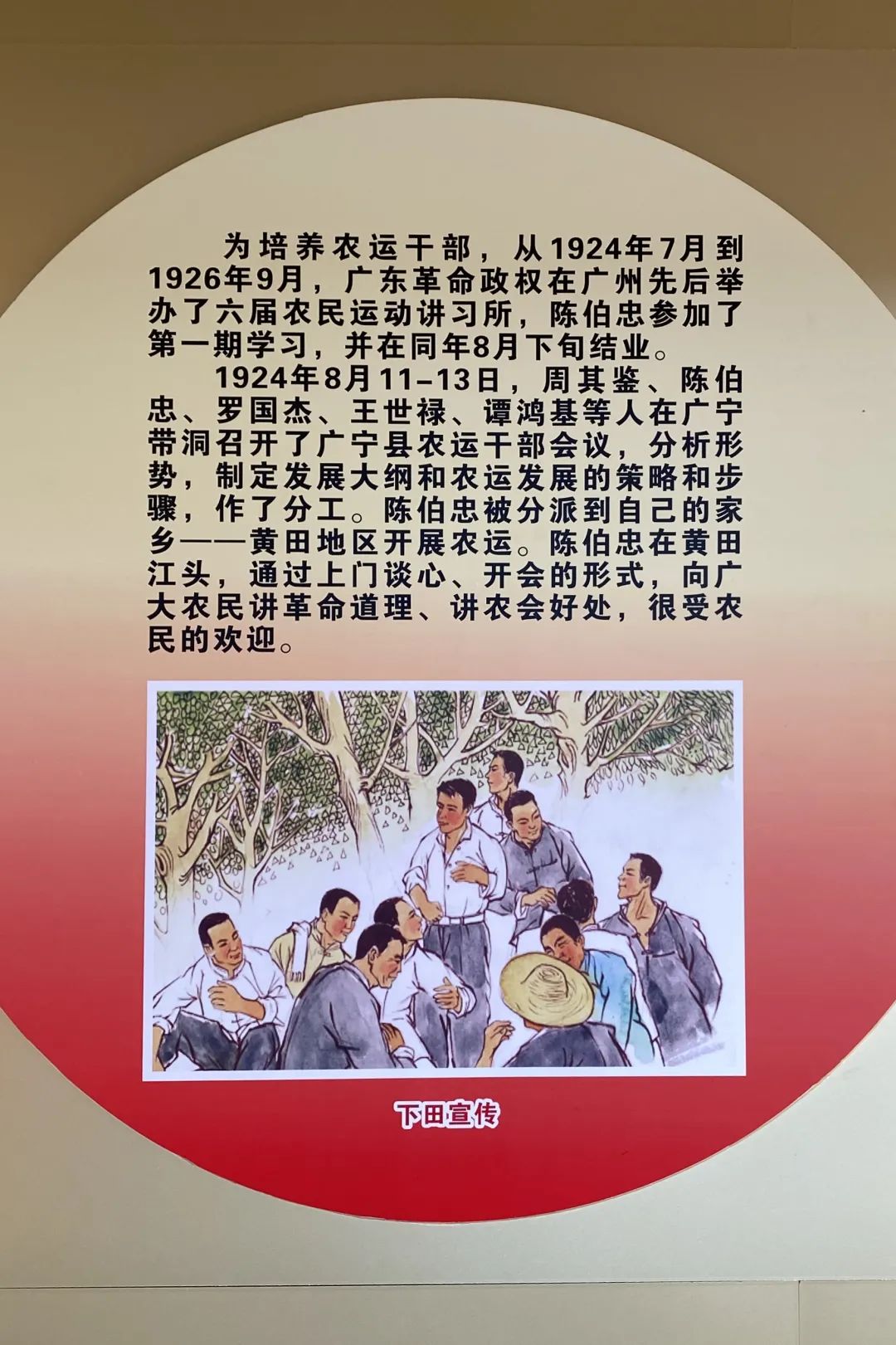 20世纪初,农民运动的风潮悄然吹至当时属于广宁的黄田镇,但这里的农民抗争意识比较淡薄。这时,陈伯忠在广州第一届农讲所结业后,回到了自己的家乡。