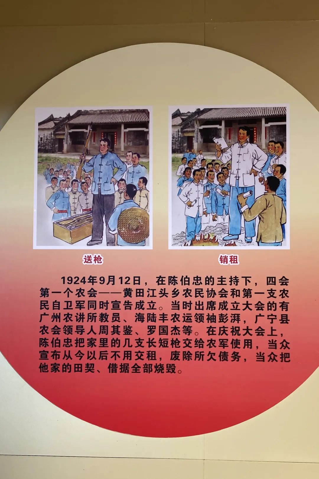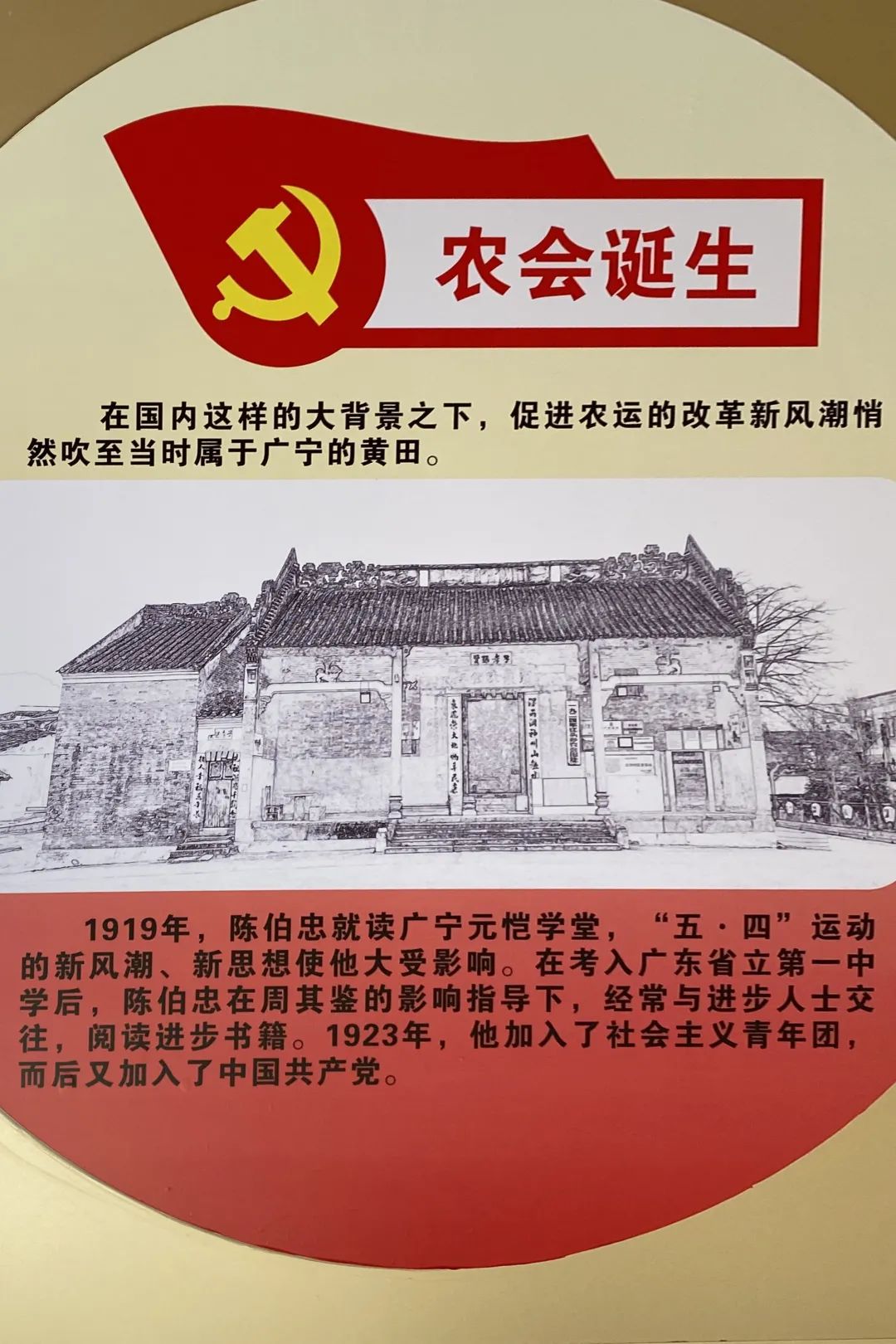 眼前的江头乡农会旧址,屋舍虽然简朴,但这里曾承载着一代人的记忆。步入屋内,设置有几个回廊,百年历史长卷就浓缩在这回廊墙上的一幅幅图片和解说词中。