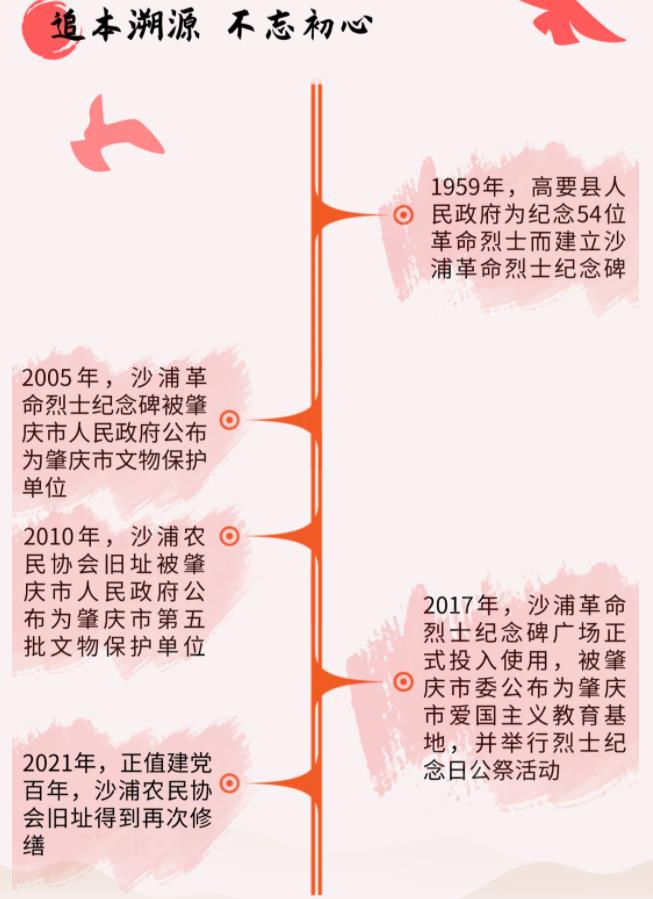 为纪念在第一次国内革命战争中献出宝贵生命的革命烈士,高要县人民政府于1959年建立了沙浦革命烈士纪念碑,2016年在此基础上扩建成为占地2万平方米的沙浦革命烈士纪念碑广场,为肇庆市增添了又一处爱国主义教育基地。