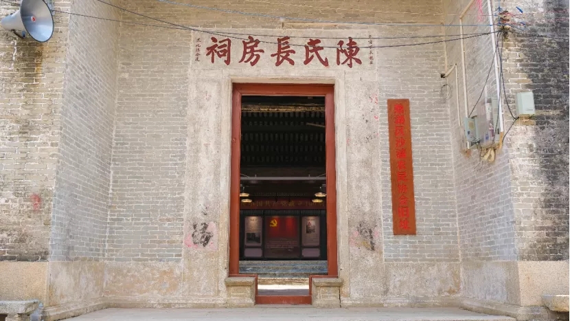 陈氏长房祠始建于清光绪年间,现址为肇庆市鼎湖区沙浦镇沙二村二街59号。这间小小的房子坐南向北,两进三间,面宽21.50米,进深21.55米,占地面积463平方米。1926年3月9日,沙浦农民协会在此成立,沙浦农民运动的重大决策和农军的各项战斗部署都从此处发出。