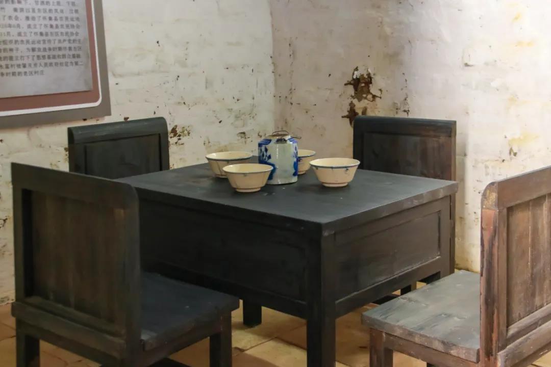 故居农会筹集室里,那张摆放在那里近一个世纪的八仙桌,见证了邓拔奇与进步青年们在昏暗的灯光下商讨农会事宜的场景。