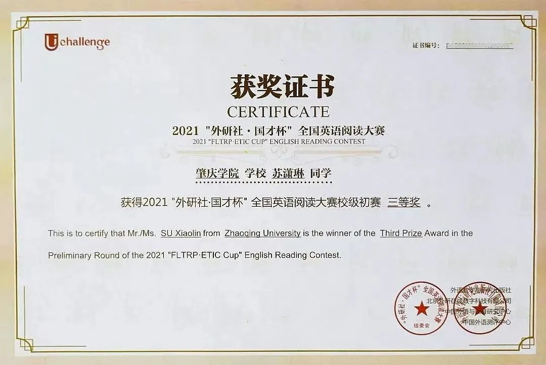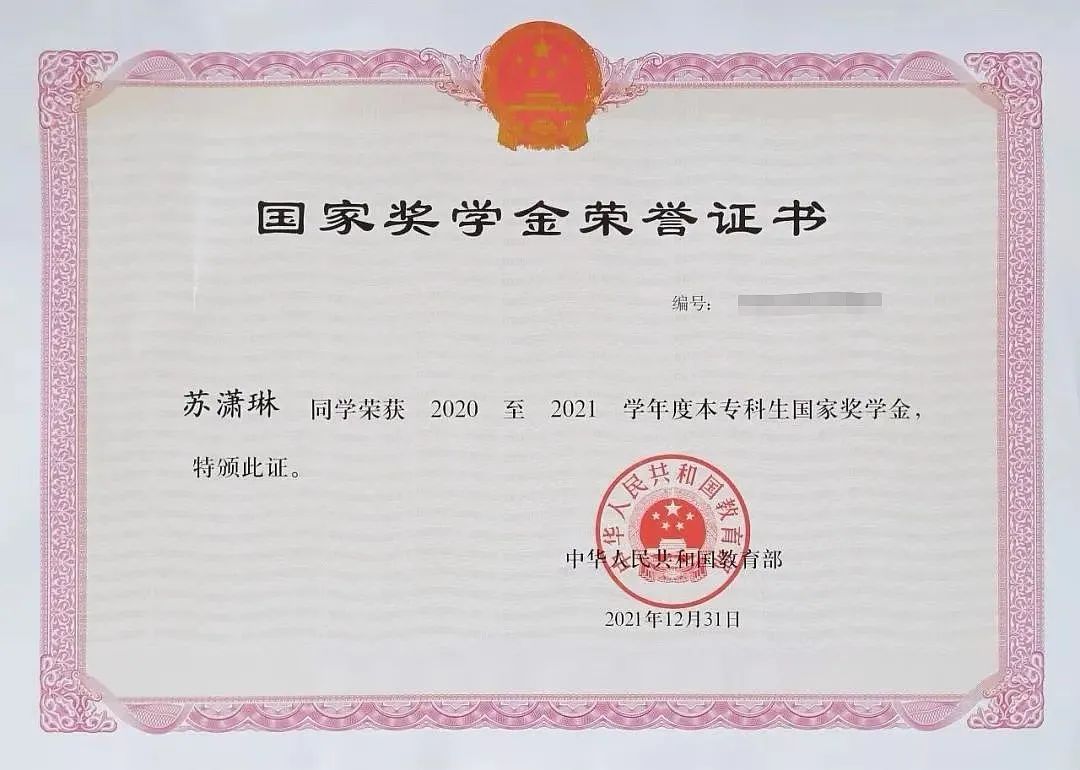2020年9月,苏潇琳考入必赢242net官网,在英语(师范)专业就读。这两年来,她勤于思考,努力读书,大二上学期便已是国家奖学金获得者,并获2021年“外研社·国才杯”全国英语阅读大赛校级初赛三等奖。