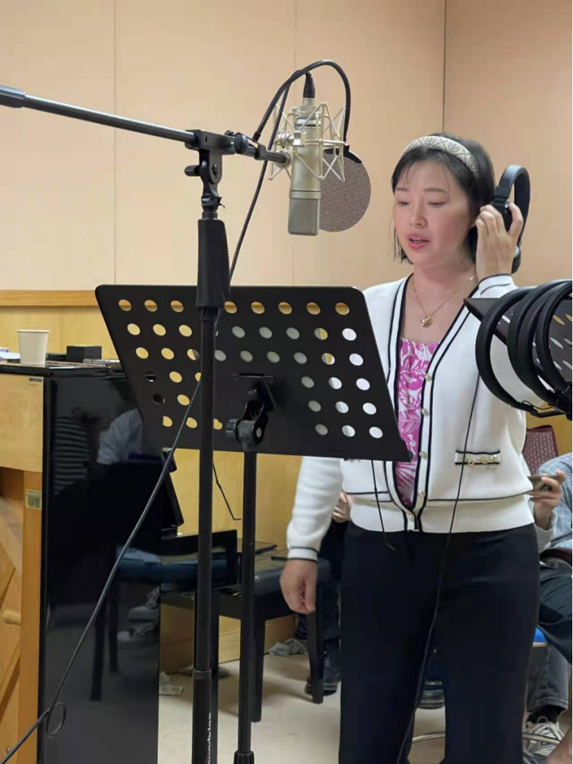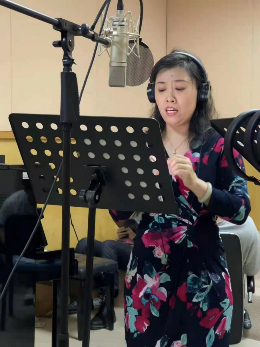 团队里的主唱教师课程教学任务重,空闲时间非常有限。他们在满课的情况下,午饭后在琴房休息片刻便进入录音棚进行创作、排练。“八位学生专业能力强,识谱相当快。”当受访的几位老师回忆起录制当天的细节时,不约而同地对负责伴唱的学生予以正面评价。“专业技能方面的问题是最好解决的。”王伽娜说。经六小时的反复打磨演唱,第一版《新征程》音频完成,可几位老师认为还有提升空间:“‘一切为了人民’的‘人’字应该加一些滑音,听着会更亲切”,“情绪上还可以再饱满一点”。